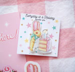 Super cute acrylic pin comes on a backing board inside a clear topped jewelry box with some little gold confetti stars.