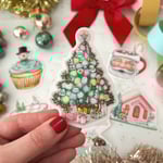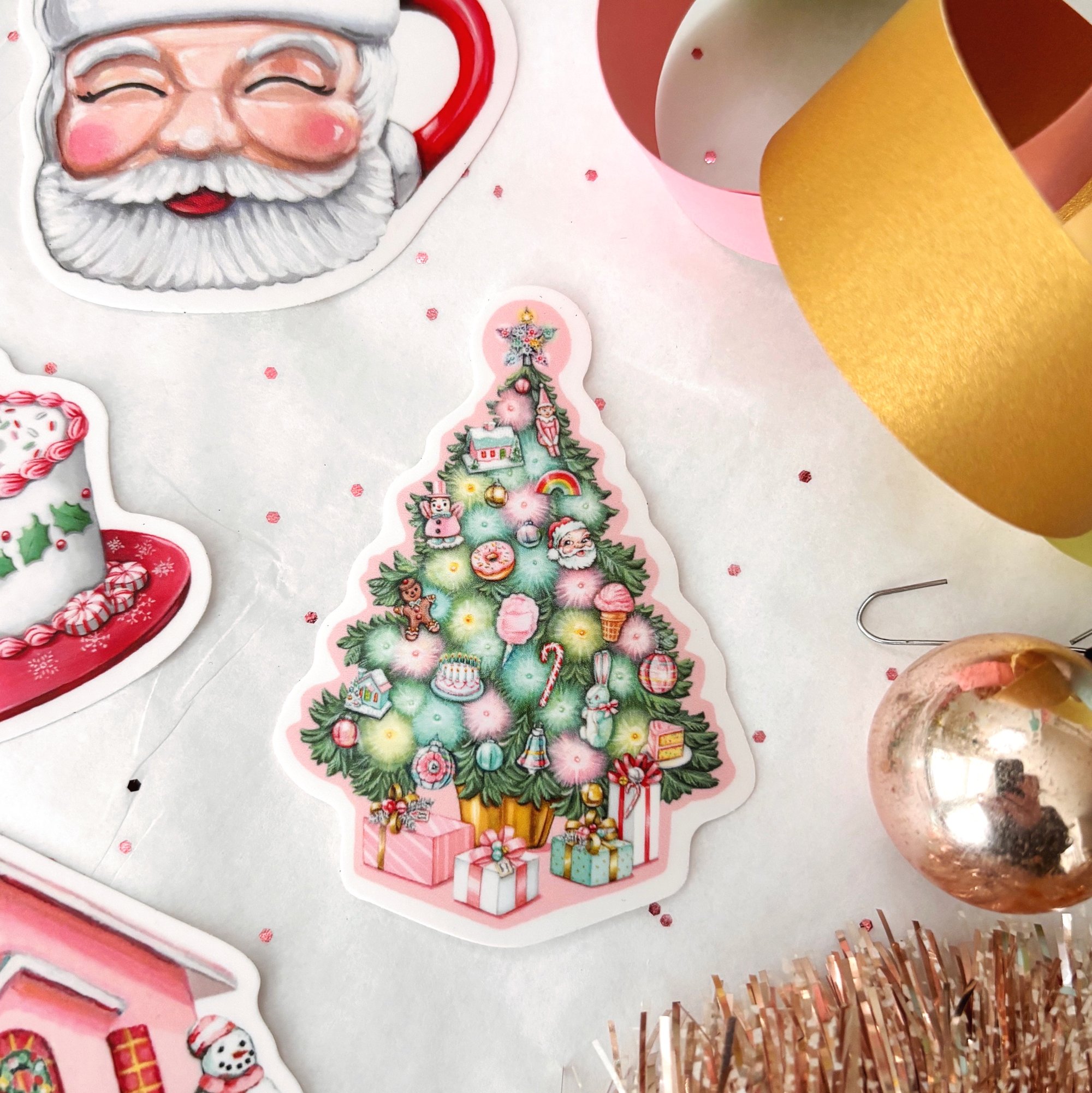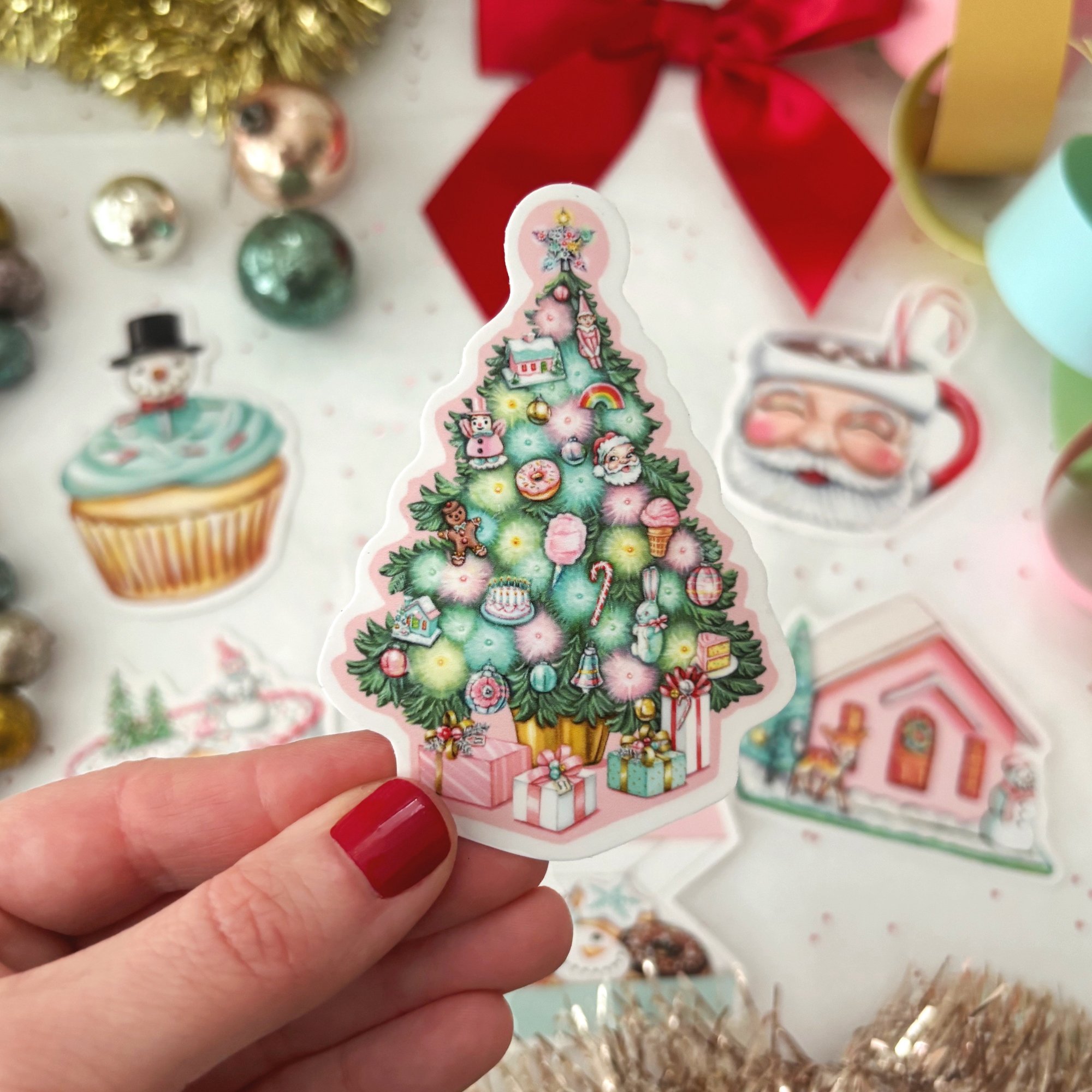 Our Christmas Dream Tree decorated with all of your holiday favorites - vintage putz houses, shiny brites, an elf knee hugger, a stuffed bunny, gingerbread man, birthday cake, ice cream, and more!