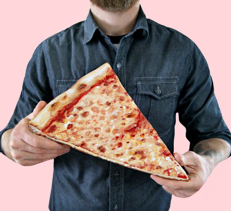 In our art we try to capture the things we love, the things that make us happy, and the things that are worth celebrating. Pizza most certainly meets that criteria! Everyday is a Holiday and Everyday is a Pizza Day are pretty much interchangeable phrases. Being from New Jersey we definitely consider ourselves to be pizza connoisseurs, and have sampled hundreds of slices from pizzerias in New York and New Jersey.
