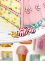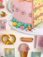 All of our (and your) favorite Holidays in one place...or we should say - on one cake! Our Everyday is a Holiday aesthetic is all about vintage paper maché bunnies living side by side with bottle brush trees and Jack O' Lanterns. We took soooo much time painting this cake...getting the colors and the details just right...and especially the shape - those toppers make for some tricky cutting on the saw. And there are so so many hand painted details...the cake texture, the frosting swirls...each piece will look and feel like a one of a kind.