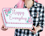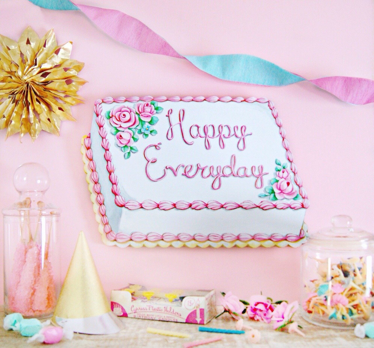 The classic bakery party cake with pink piped roses! That open field of white buttercream just waiting for your special message. And why oh why would we limit ourselves to just one per year?! Birthday cake everyday...Happy Everyday!