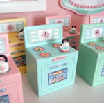 Inspired by mid century tin toy stoves in all their pastel colored magic! Each stove is sculpted with paper mache and various mixed media materials, hand painted, and adorned with super cute graphic details. We love the rounded corners and semi wavy look of paper mache. They're perfectly imperfect!