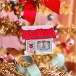 Red roof Christmas cottage ornament