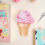 This big beautiful cone is so fun! The perfect piece to brighten up your walls and cheer up your day. Once again we drew upon our favorite childhood memories for inspiration. The classic scoop style ice cream cone, aka Hard Serve.
