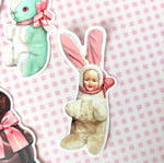 We have had our vintage Bunny Baby on the mantle forEVER. Vintage doll faced bunnies are so hard to come by and in all of our years of collecting we can honestly say that our specific Bunny Baby is the sweetest one we've ever seen. So of course we had to paint it!
