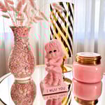 These little Russ Berrie figurines were everywhere in the 1970s and early 80s. With their oversized heads, gleaming black eyes, cute little sayings, and they were usually a creamy white, aqua, or pink like this little cutie.