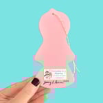Our ornaments are made from our original paintings and each has lots of handpainted details. They are fully finished and painted our signature pink on the sides and back.