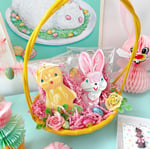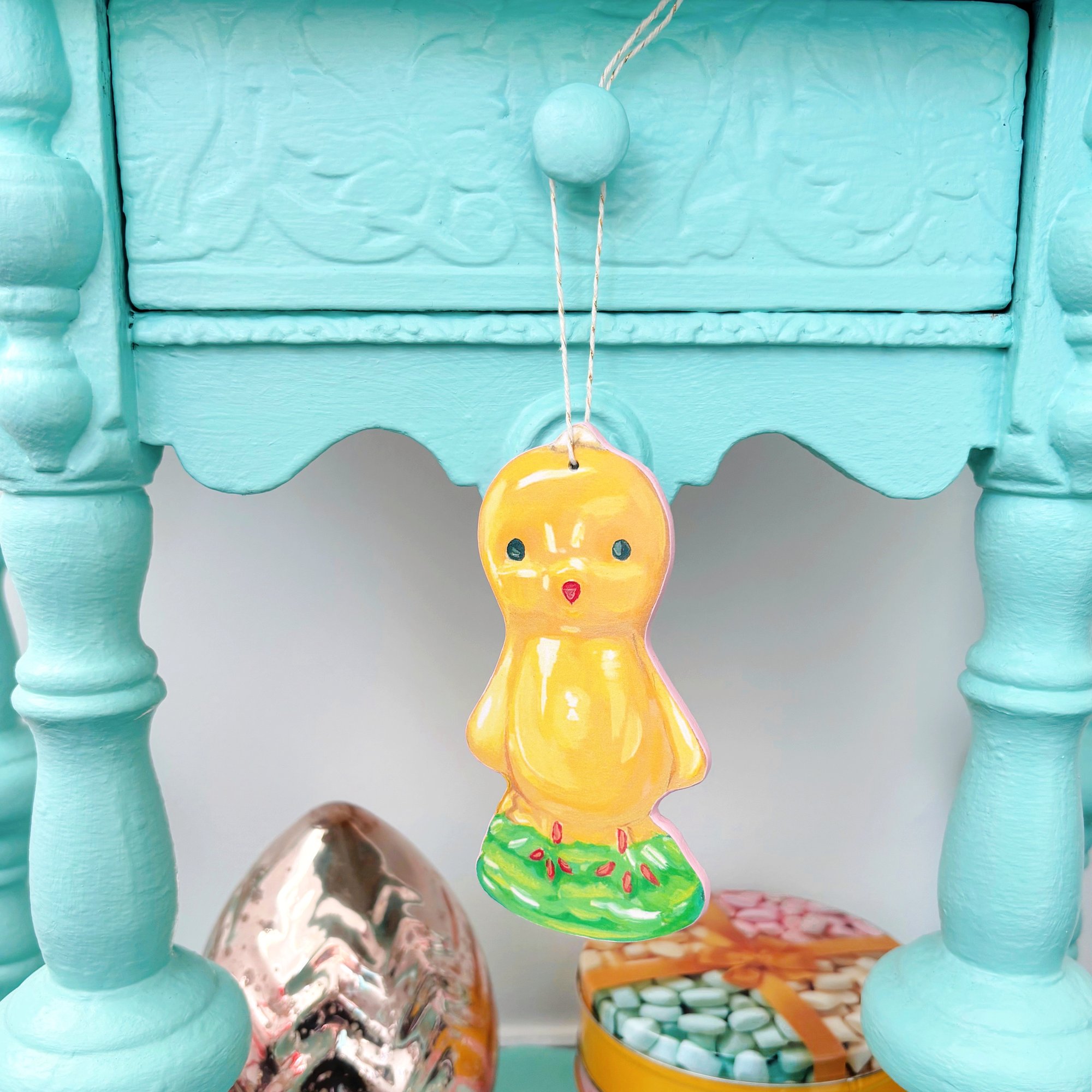 Some of the very best holiday collectibles once lined the shelves of golden age dime stores. What a treat it is to find some never-lit vintage Gurley candles! These Easter ornaments were inspired by a couple of our favorites. This adorable little Chick is too cute for words and his Pink Bunny pal (see shop) is so sweet. Perfect for hanging on your Easter tree, drawer pulls or cupboard handles.