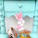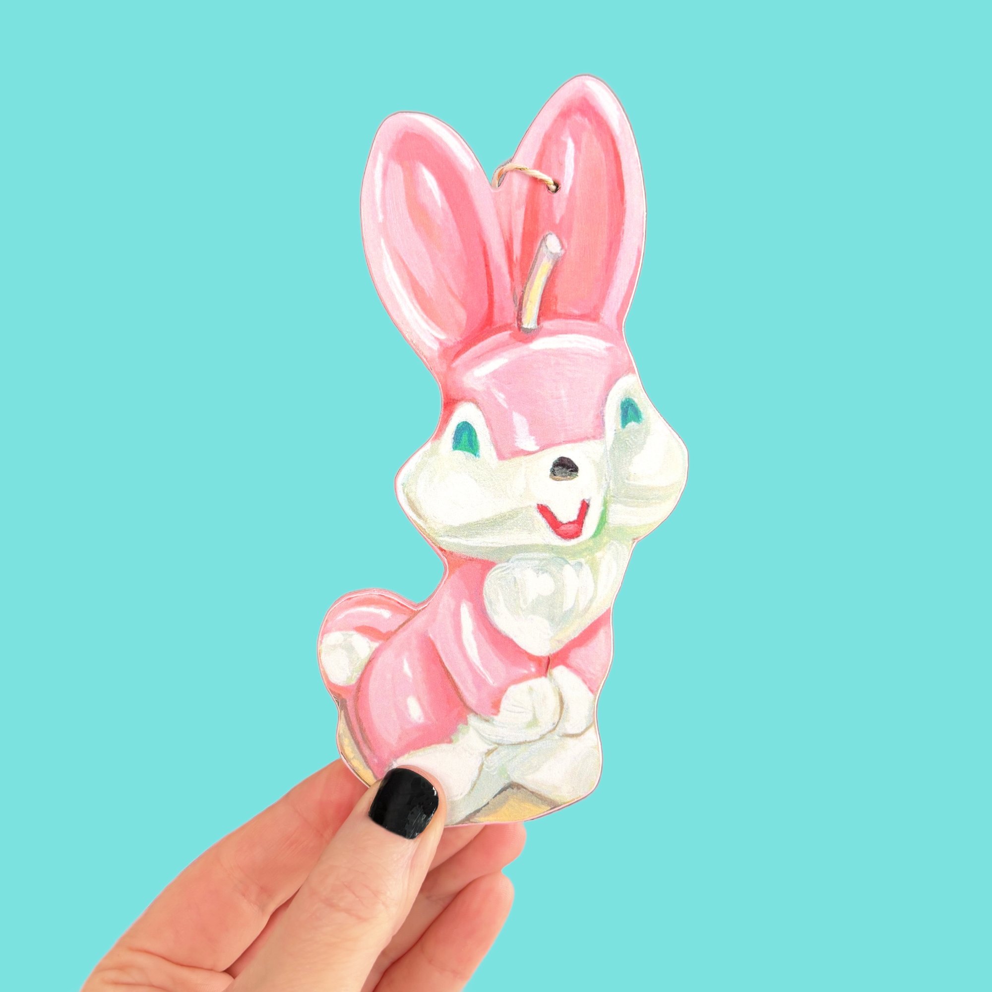 Some of the very best holiday collectibles once lined the shelves of golden age dime stores. What a treat it is to find some never-lit vintage Gurley candles! These Easter ornaments were inspired by a couple of our favorites. This little blue eyed pink bunny is so sweet, and his Chick buddy (see shop) is too cute for words. Perfect for hanging on your Easter tree, drawer pulls or cupboard handles.
